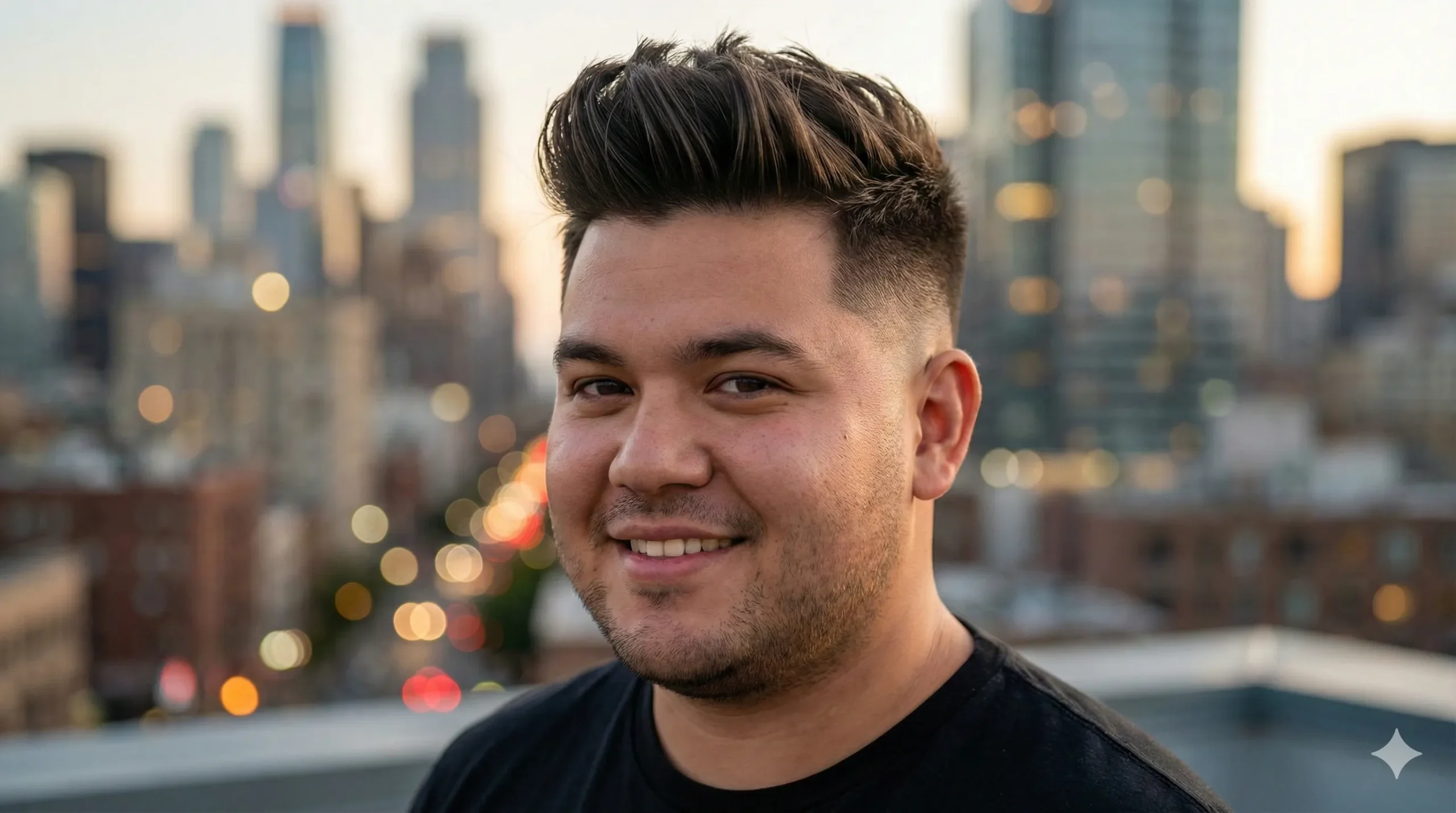 👉 Short sides + volume on top = slimmer face